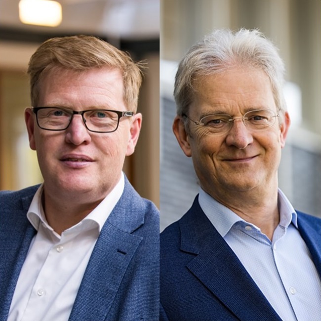 Bijschrift foto: links Eric Kroon, lid Raad van Bestuur Deventer Ziekenhuis, rechts Paul Offringa, directeur Zorg Salland Zorgverzekeraar